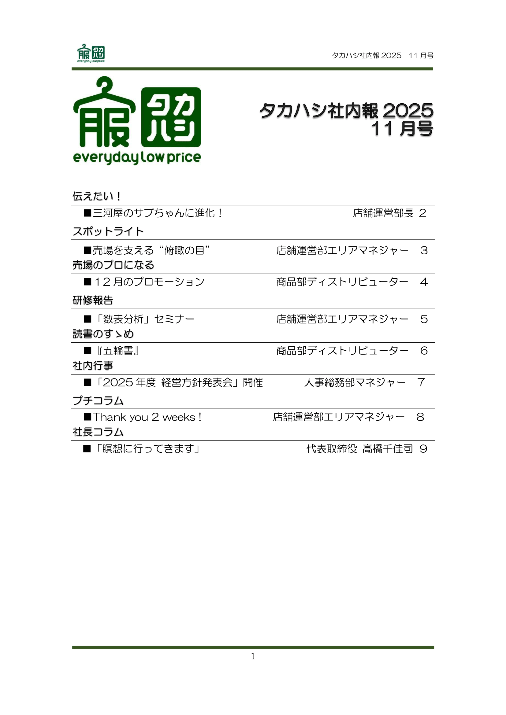 「タカハシ社内報」2025 11月号 公…